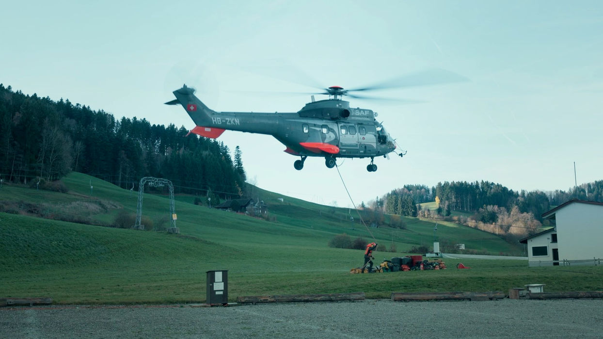 A spectacular documentation video about how the Green Tower from Axians is set up with a helicopter in Gähwil.
